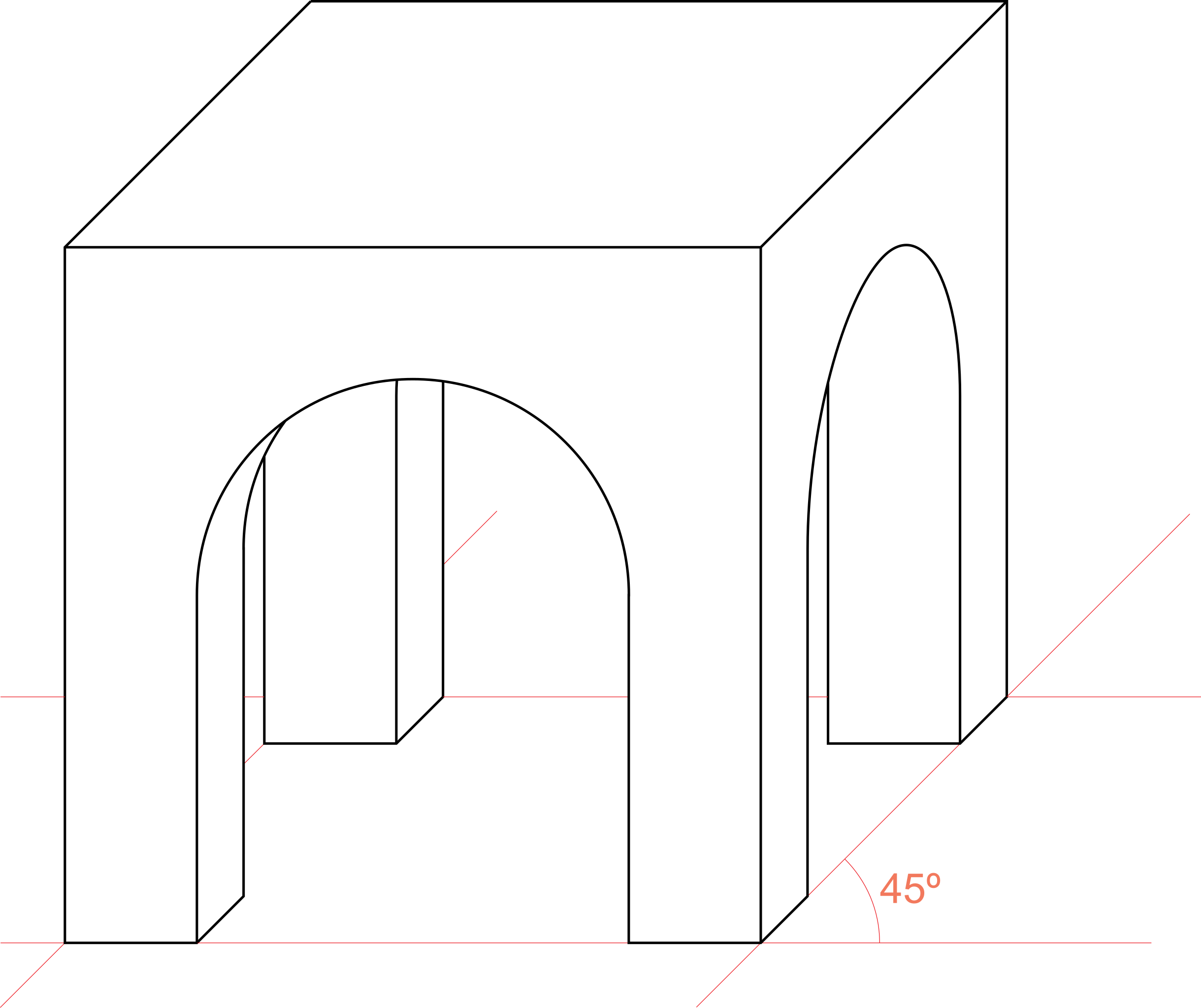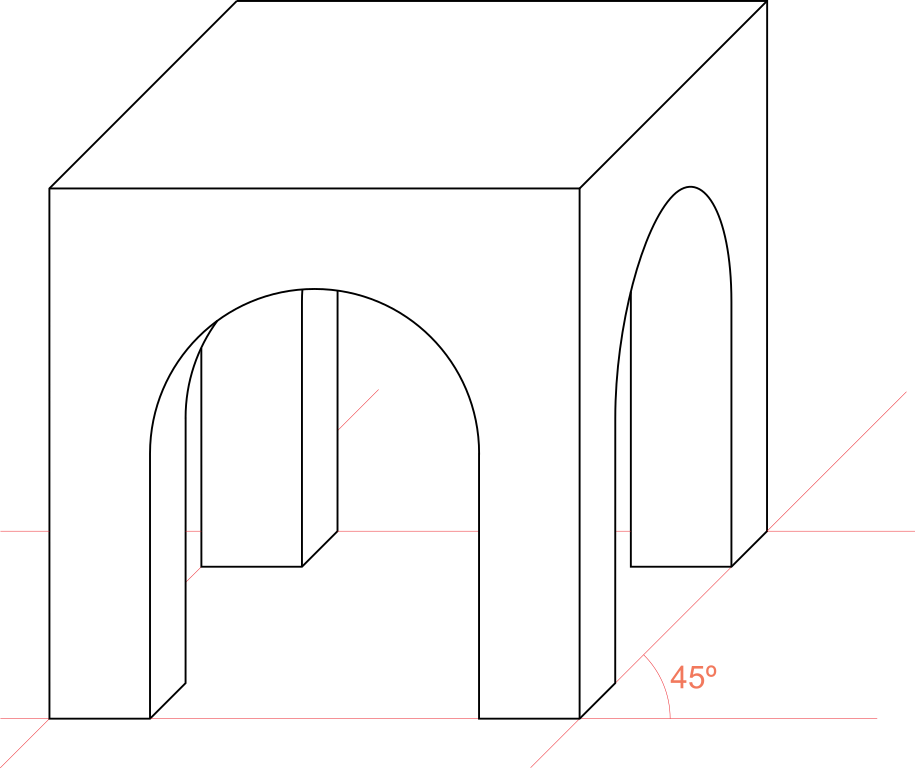 [edit]Drawing in cavalier perspective at 45 degrees. Desenho em perspectiva cavaleira a 45 graus.