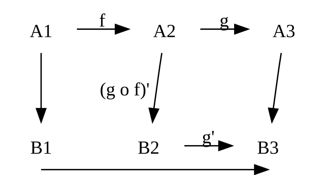 B1 -> B3 [label="(g o f)'" tailport=s headport=s]