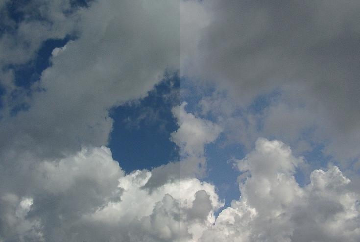Foto: sv:Användare:Chrizz Halva bilden fotograferad med polaricerande filter och halva utan. |