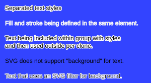 - ↑ You can change the colour, of the invisible path, which is used as the boundary of the flowRoot, similar to File:FlowRoot and flowRegion.svg, or you could also use the more general