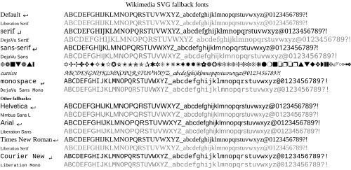 - ↑ http://www.w3.org/TR/SVG/fonts.html#FontFaceElementFontFamilyAttribute