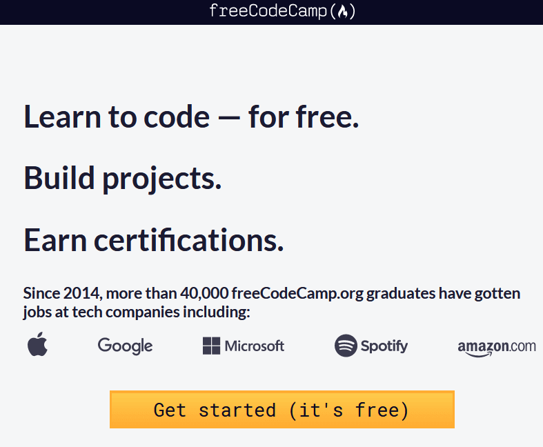 Like the name suggests, freeCodeCamp is a learning platform with free programming courses. If you’re just starting out and not yet sure what coding languages to focus on, freeCodeCamp is a good start.