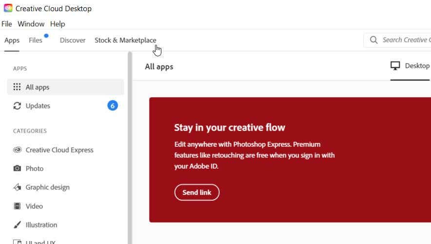 1. Open Adobe Creative Cloud and go to Stock & Marketplace.