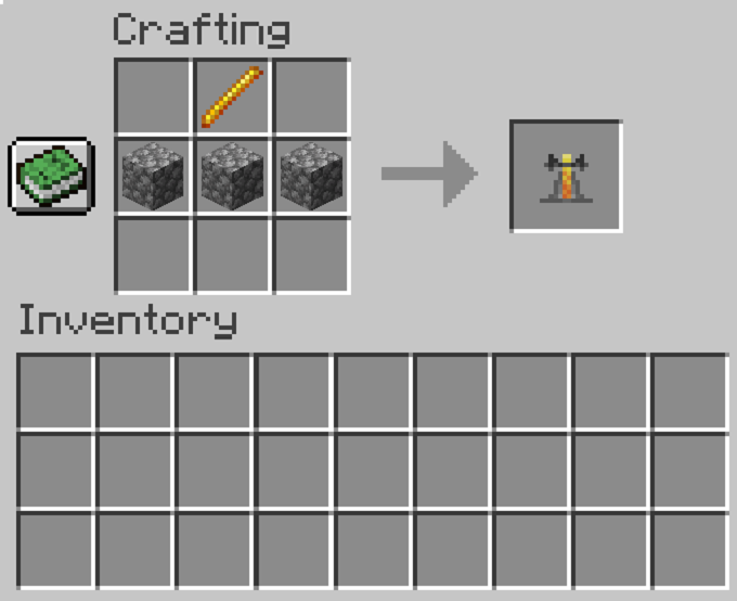 - Place the Blaze Rod in the top-middle square of a Crafting Table.