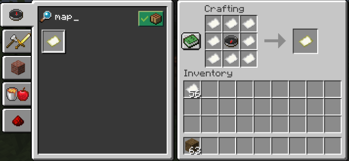 - Type “empty map” into the search bar and click it. If you have the necessary items, they will auto-populate in the Crafting Table.