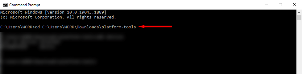 1. Next, you should change the Command Prompt directory so it’s in the same folder as the ADB program. To do so, you need to use the command “cd” followed by the folder location. For example: