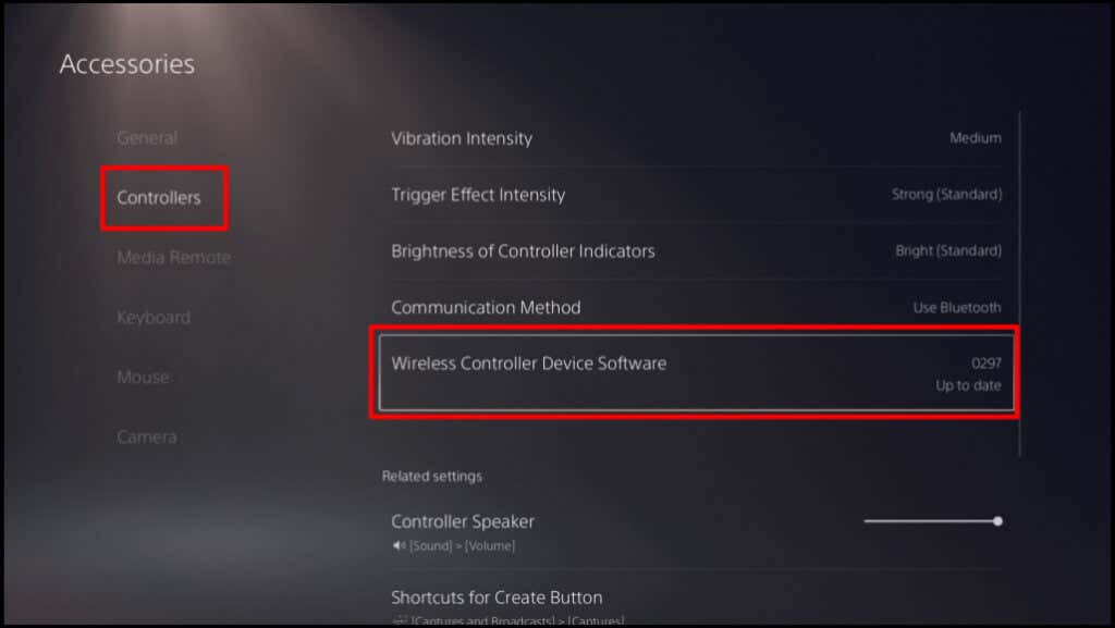 You can also update your controller from the PS5 console. Open your PS5’s settings menu, go to Accessories > Controllers, and select Wireless Controller Device Software.