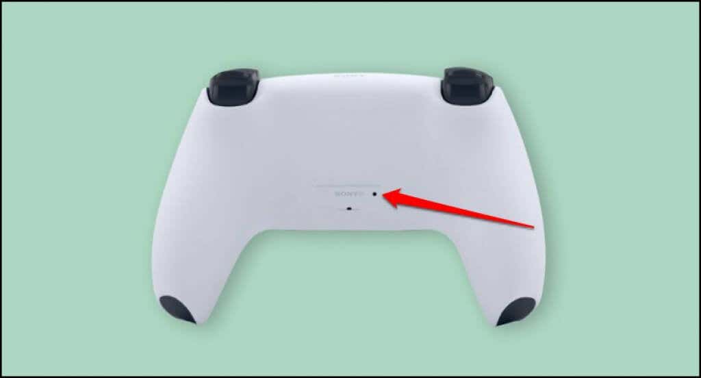 Locate a tiny circle-shaped hole on the back of the controller. Inside the hole is the DualSense controller’s reset button. Insert a pin or paper clip in the hole and push the reset button for 3-5 seconds.