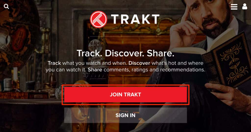 1. Visit Trakt TV’s website on any web browser and select Join Trakt or Join Trakt for Free on the home screen.