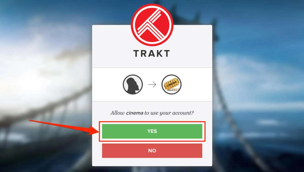 1. Select Yes on the confirmation prompt to connect the Trakt add-on to your account.
