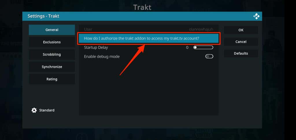 1. In the General tab, select How do I authorize the trakt addon to access my trakt.tv account?.