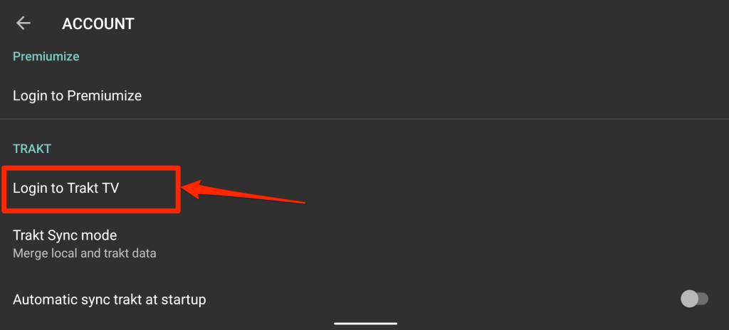 1. Scroll to the “Trakt” section and select Login to Trakt TV.