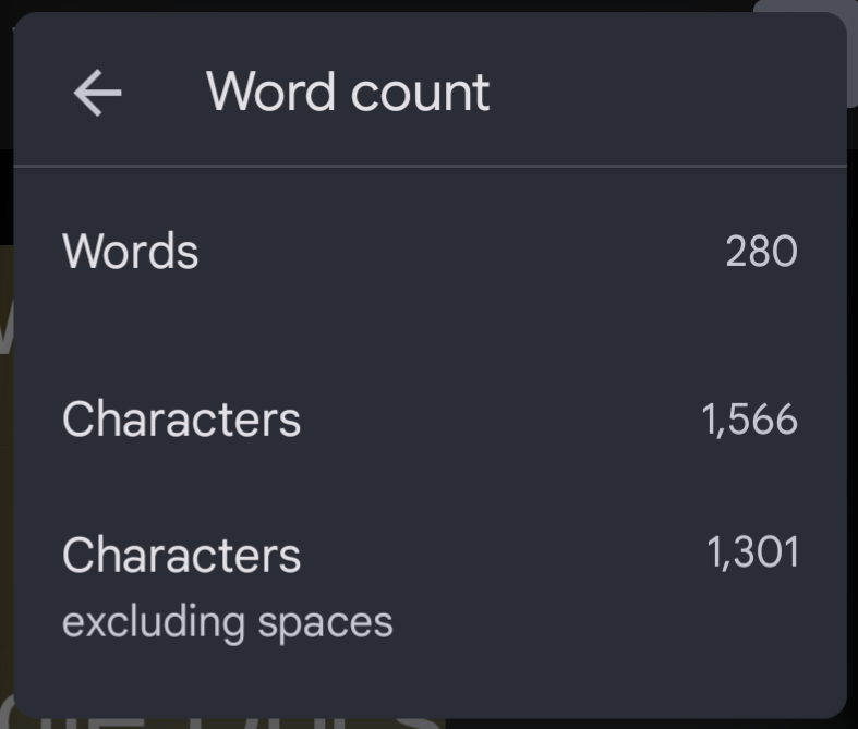 On Android and iOS, you can view the word count in the Google Docs app by selecting the three dots icon and then selecting Word count.