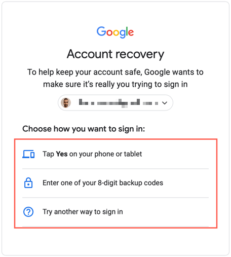 You may see one or more of the following depending on your Google Account’s security setup.