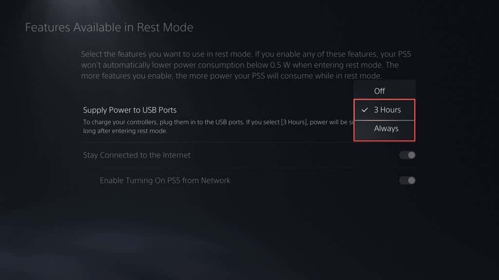 Depending on your selected option, your PS5 should now supply power to its USB ports for continuously or up to three hours.