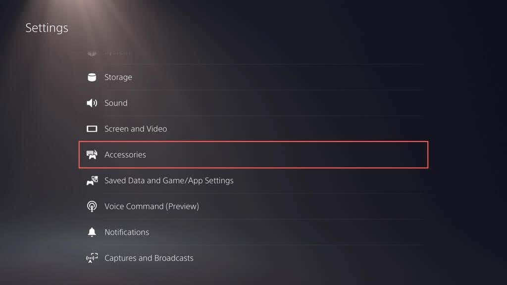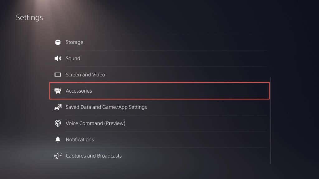 1. Open the PS5’s Settings menu and select Accessories.