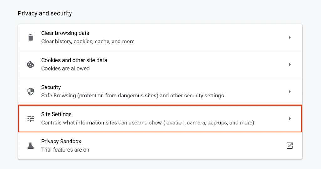 2. Select Privacy and security on the sidebar.