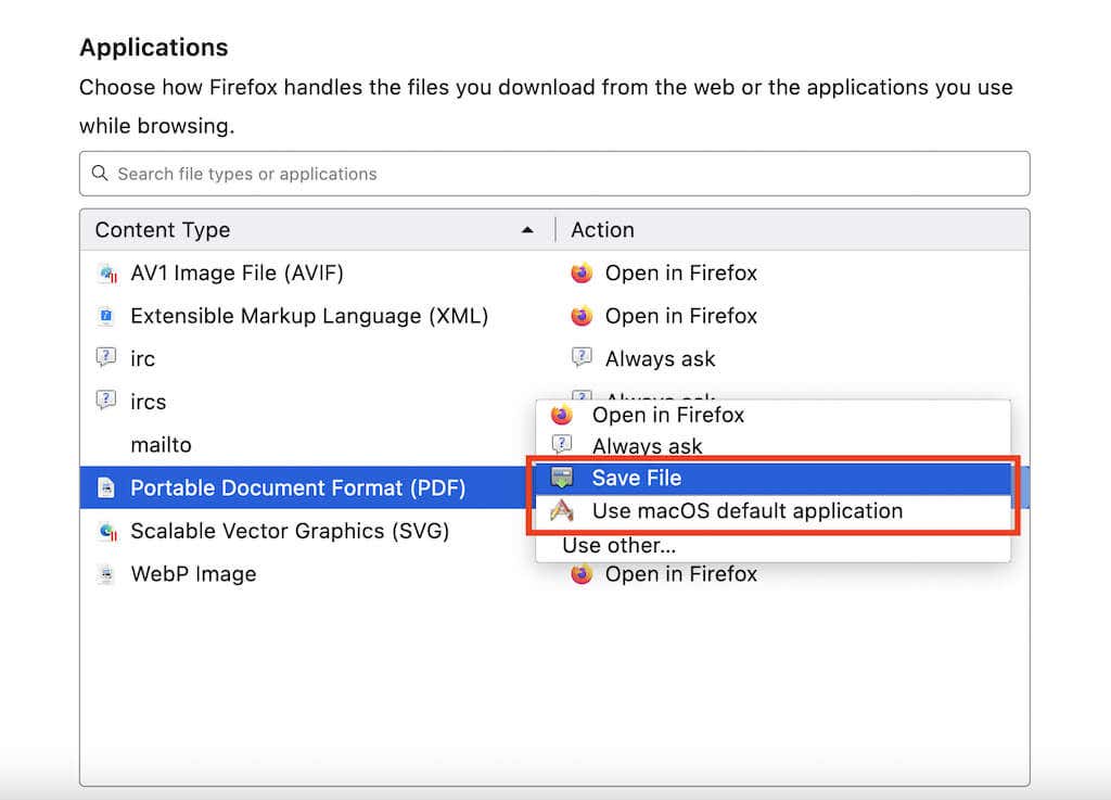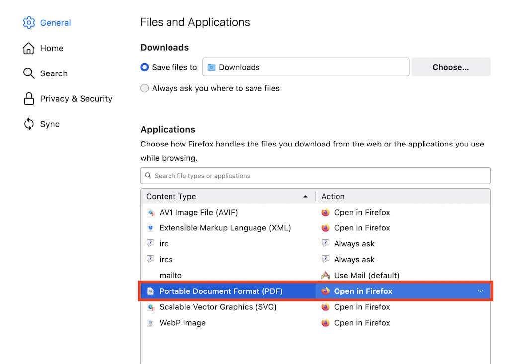 Mozilla Firefox not only lets you disable its built-in PDF viewer but also allows you to pick between downloading documents or having them open automatically in your computer’s default PDF viewer.
