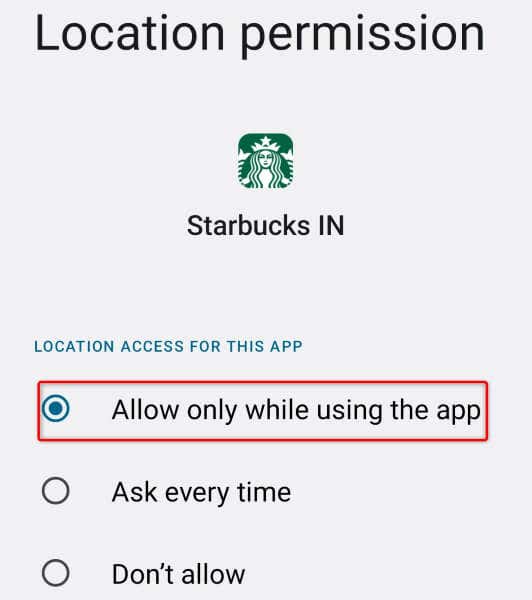 The Starbucks app requires access to your location to deliver your orders. If you’ve denied this permission to the app on your phone, that may be why you can’t use the app. In this case, access your phone’s permission settings and give Starbucks all the permissions it needs.