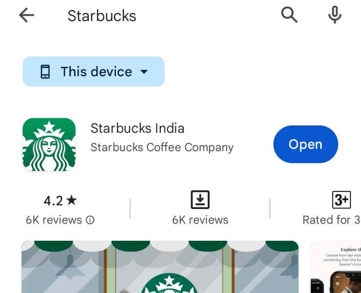 - Open Play Store, find Starbucks, and tap Install.