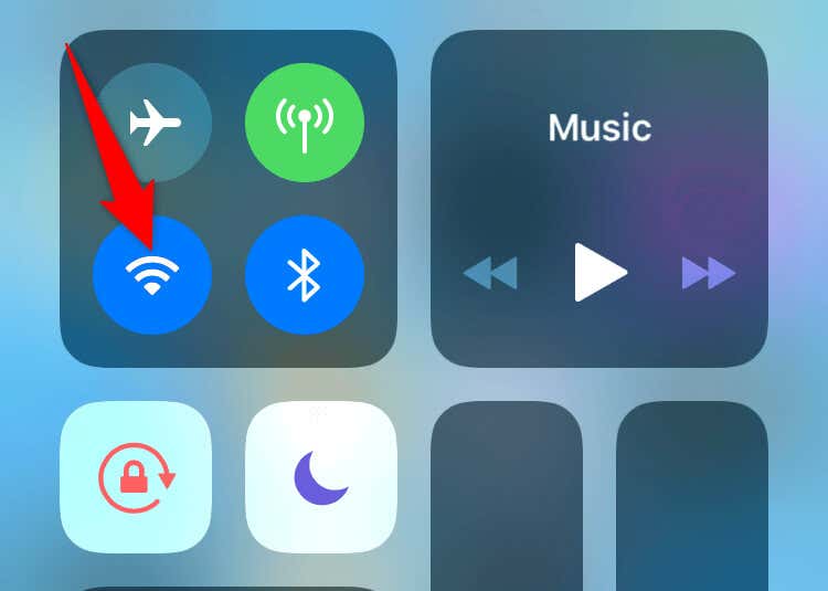 On an iPhone, you’ll swipe down from the top-right corner of your phone’s screen and tap the Wi-Fi icon.