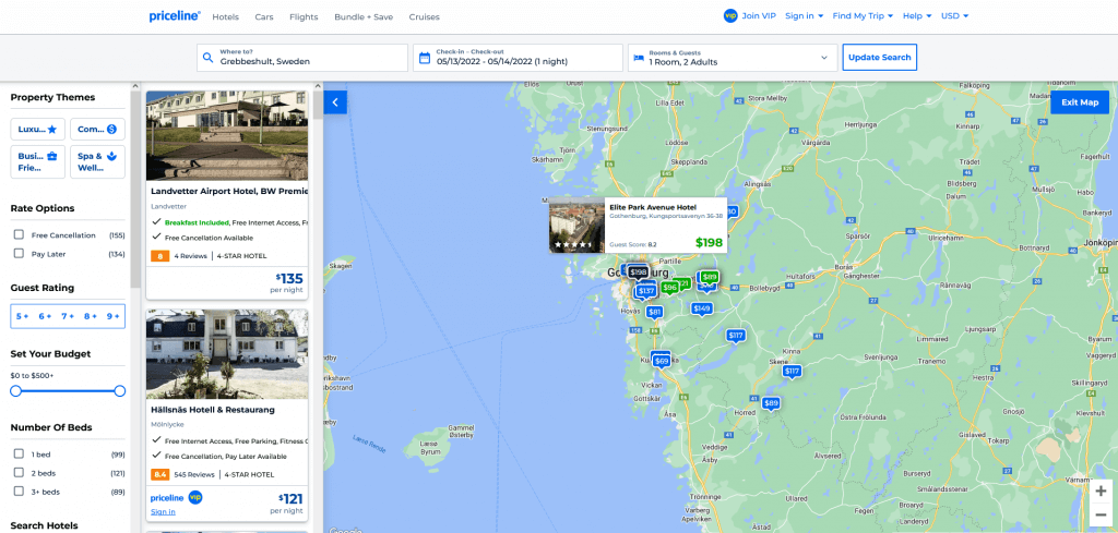 Priceline lets you customize your travel package if you don’t like the hotel room or the flight times they have offered. But keep in mind that every change will come at a cost. That said, flexible travelers will be awarded Express Deals that give up to 60% discount on hotel stays. The only downside is that you won’t know the hotel’s exact location or name until after the booking is completed.