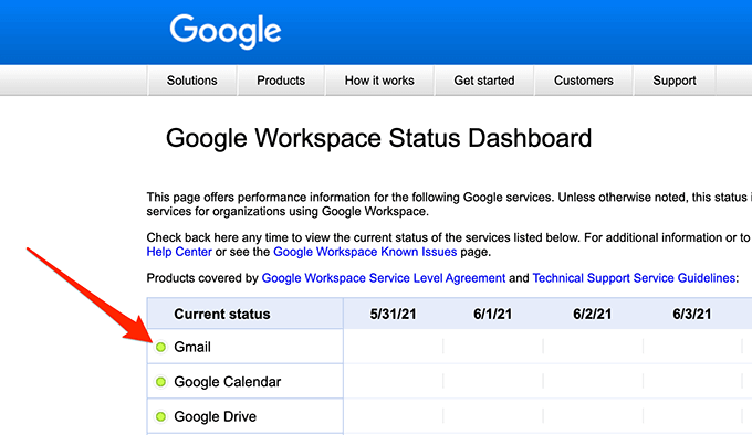 - Open Gmail’s status web page in your browser.