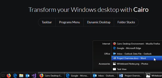 It kind of makes your Windows desktop look more like the Mac OS X desktop. It’s not highly customizable or anything like that, but it does give your desktop a unique look.