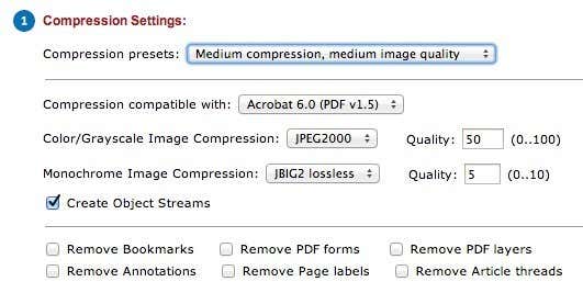 In addition, you can remove bookmarks, remove PDF layers, remove annotations, remove page labels and manually adjust the quality for color and monochrome image compression.