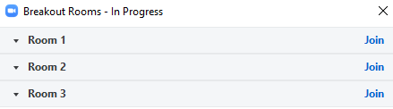Even before self-select breakout rooms were an option, meeting hosts could join breakout rooms and move between them to make sure everything’s going smoothly. That is still the case. As a host, once you open the breakout rooms, you can choose to join a specific breakout room via the breakout rooms panel.