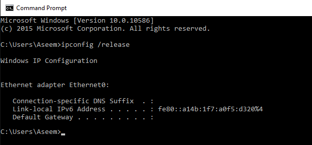 At the prompt, go ahead and type in the following command, which will release your IP address: