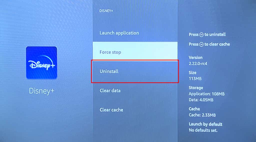 Remove Disney+ from your Fire TV and reinstall the application if the app malfunctions after trying the fixes above.