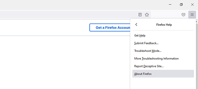 - Select the three bars to open the menu and choose Help > About Firefox.