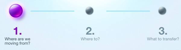 The process is basically three steps: where from, where to and what to transfer. Go ahead and fill in your login credentials for the email provider you want to move from first and click Next. Then enter the credentials for the email provider you are moving to and click Next.