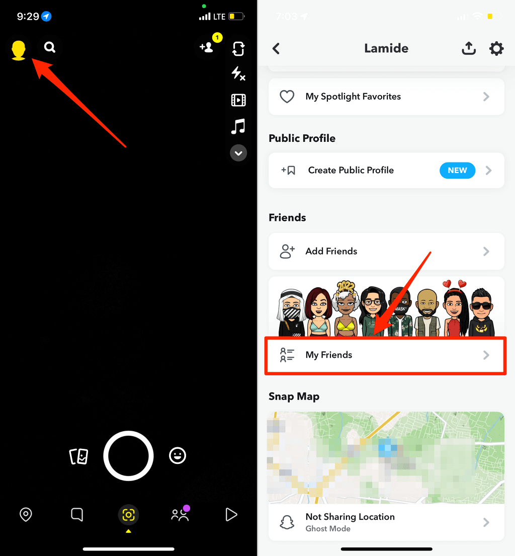 - Open Snapchat, tap the profile icon in the top-left corner and tap My Friends in the “Friends” section.