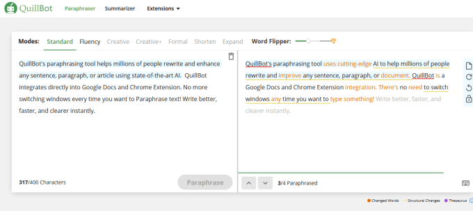 If you don’t want to switch windows every time you want to paraphrase text, QuillBot is the best paraphrasing tool for that. This is because it plugs into the writing tools you already use like Microsoft Office, Google Docs and Google Chrome.