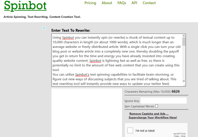 Spinbot is a free paraphrasing tool that spins the content you paste or write directly on its editor.