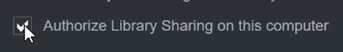 1. Make sure Authorize Library Sharing on this computer is checked.