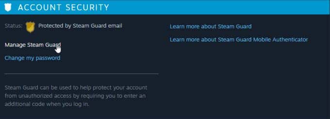 1. Click on your username and go to Account Details > Manage Steam Guard.
