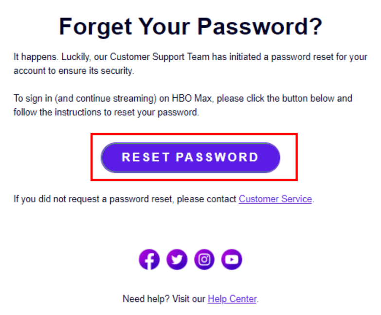 2. Once you open the “Reset Your HBO Max Password”, select Reset Password.