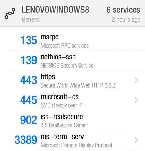 The Host Name column should give you an easy to understand name for the device. On the right, you’ll see a column called TCP Ports, which will list out all the open ports for that device. Obviously, the numbers don’t make much sense unless you know what they means, so check out this Wikipedia page that describes each port number in detail.