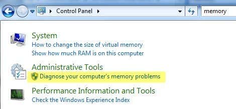 The easiest way to start is to use the Windows Memory Diagnostics Tool built into Windows. To get to it, open Control Panel and then click on Administrative Tools. You can also open Control Panel and just type the word memory into the search box. You’ll see a link to diagnose your computer’s memory problems.