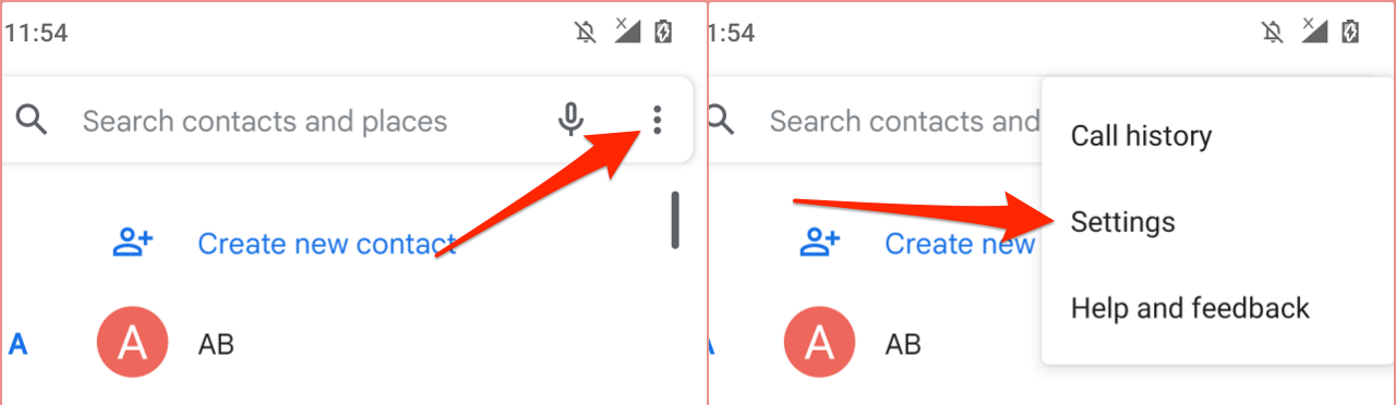 - Launch the Phone app, tap the three-dot menu icon at the top-right corner, and select Settings.