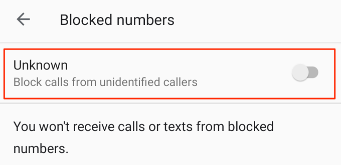 You should also toggle off the “Block call from unidentified callers” option. That’ll automatically unblock calls from numbers that aren’t on your contact list.