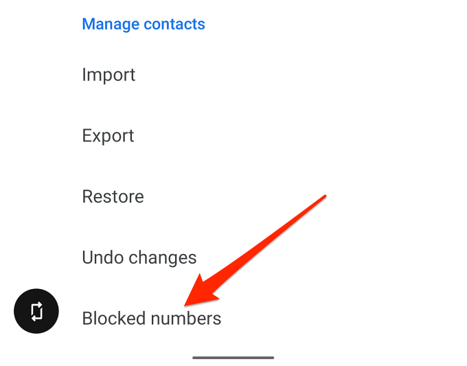- Head to the “Manage contacts” section and select Blocked numbers.
