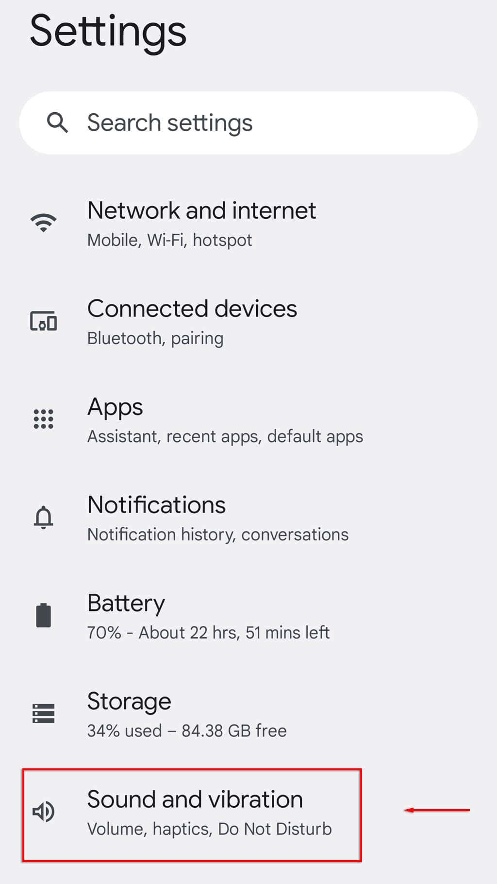 2. Select Sound and vibration.