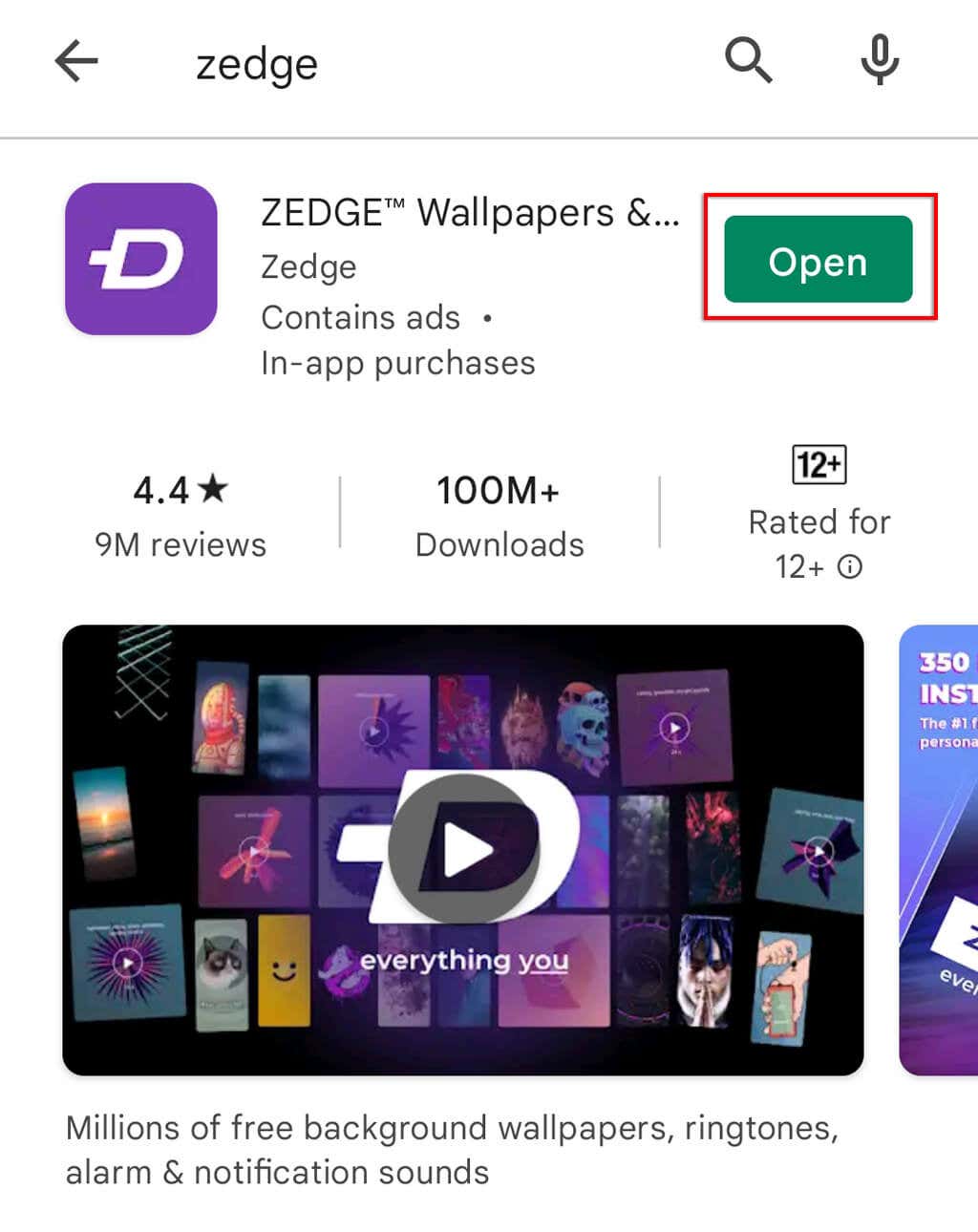 1. Open the Google Play Store, and search for Zedge.