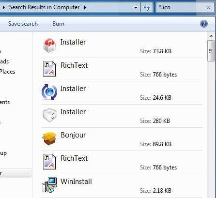Step 1: The first thing you’ll need to do is either find an .ICO file on your computer or online that you would like to use or create your own ICO file from an image. If you want something really fast you can open Explorer and simply perform a search for *.ICO.