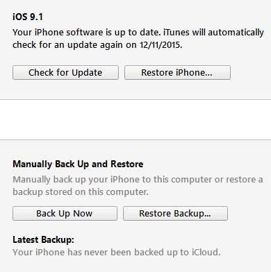 Before you reset or restore anything, you should always make a backup just in case there is something you need at a later point or something goes wrong. I suggest making a backup to both iCloud and to iTunes. If you don’t have enough space in iCloud, then making just a local backup to iTunes will be fine. Let’s start with iTunes backups.