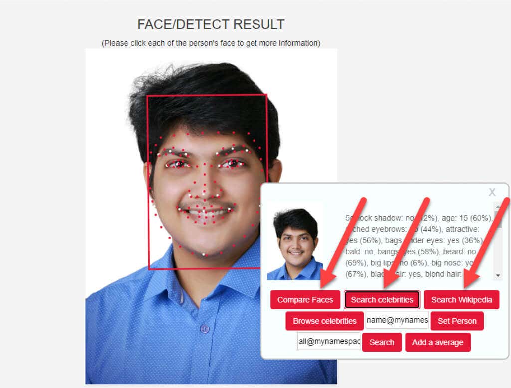PicTriev will use its search technology and give you a list of 10 celebrity lookalikes. If you don’t know who a celebrity is, click on the image and it will take you to their Wikipedia page. The facial recognition search engine also gives you a percentage for how masculine or faminine your face looks in a picture and estimates your age.